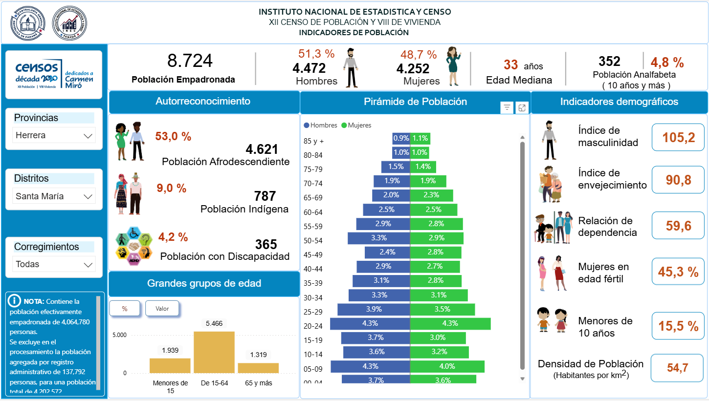 De Acuerdo a la Contraloría General de la República de Panamá, Instituto de estadística y censo la población del Distrito de Santa María es: